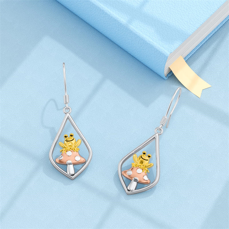 Frog: The cute frog stands on the mushroom with a smile. The combination of the frog and the mushroom allows you to feel the natural scenery as soon as you put on the frog dangle earrings.