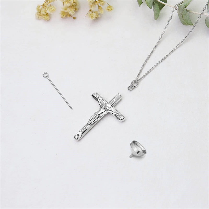 • Sterling Silver Jesus Christ Crucifix Cross Urn Necklaces for Ashes