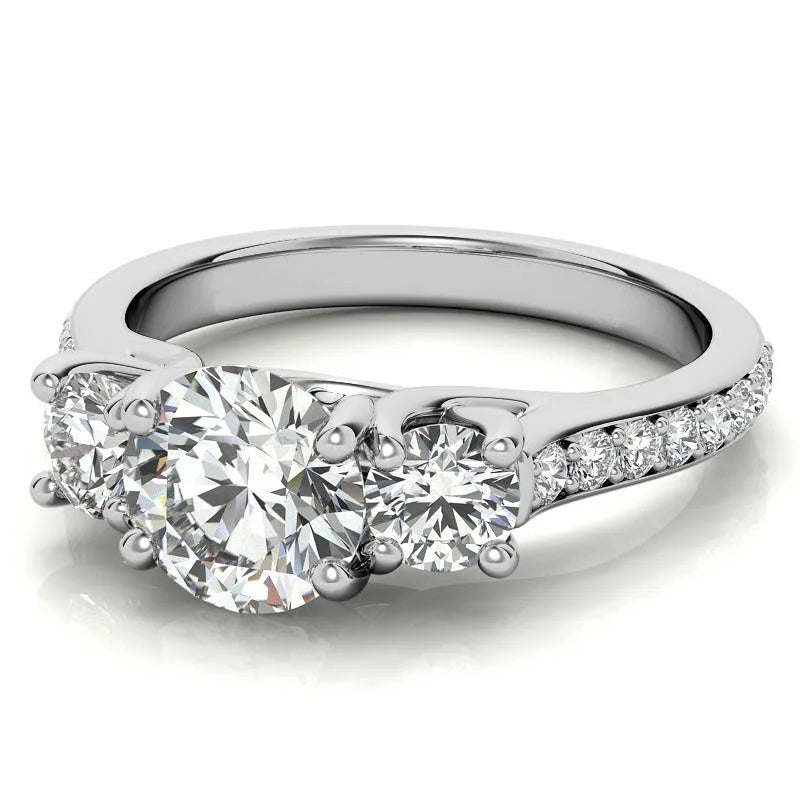 Elevate your love story with our exquisite 10K Gold Engagement Ring, designed for the modern woman who appreciates the brilliance of high-quality jewelry. This stunning three-stone ring features an impressive total weight of 1 to 5 carats, showcasing exceptional polish, cut, and symmetry, making it the perfect symbol of timeless elegance and commitment.