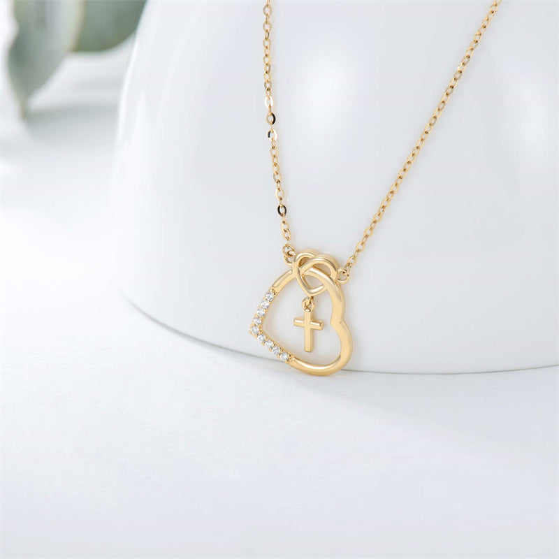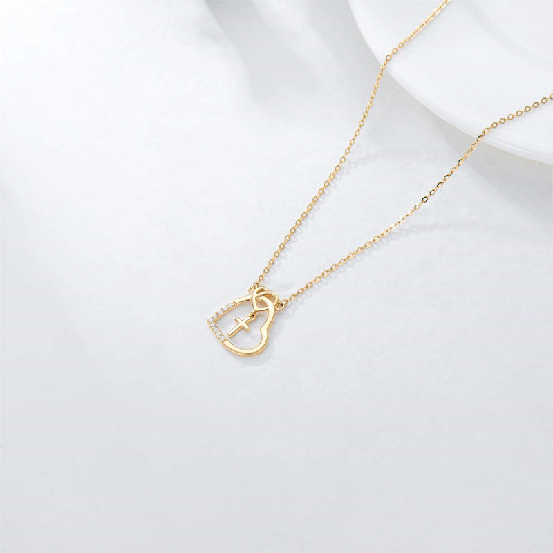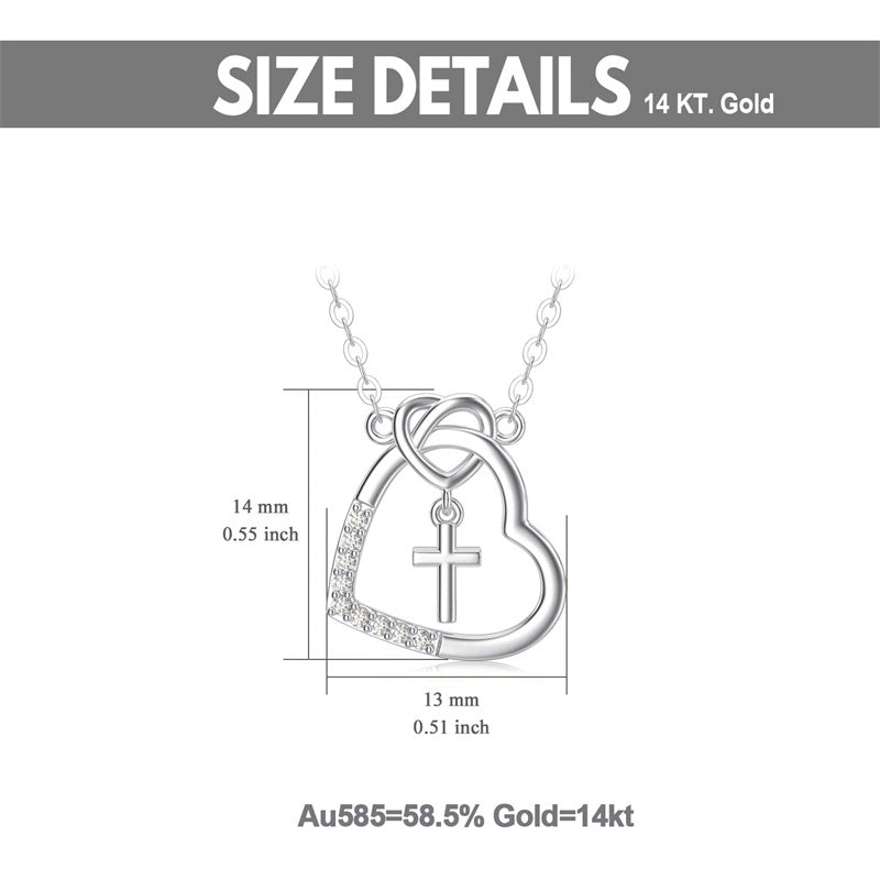 14K l Gold Heart Cubic Zirconia Cross Heart Pendant Necklace
