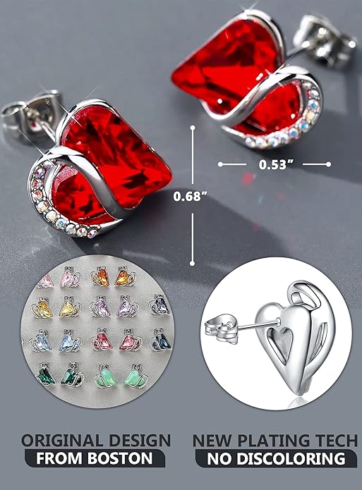 Delicate Heart Jewelry that Lasts - These statement earrings for women are adorned with 0.53 x 0.68-inch birthstone crystals. They are silver plated and designed with secure stud posts.