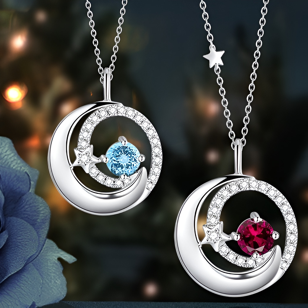 ❤Moon & Star Pendant❤ Delicate Moon and Star Necklace with a round-shaped stunning and shining birthstone,brings a new meaning to the saying: "Love you to the moon and back".