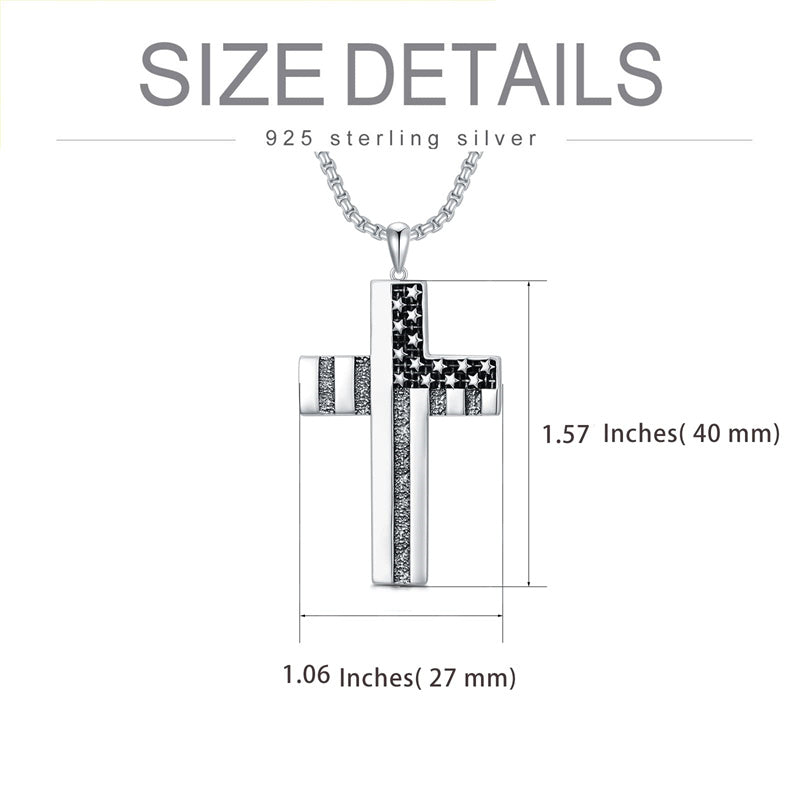 Sterling Silver American Flag Patriot & Cross Pendant Necklace for Men