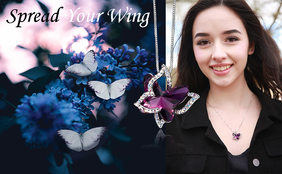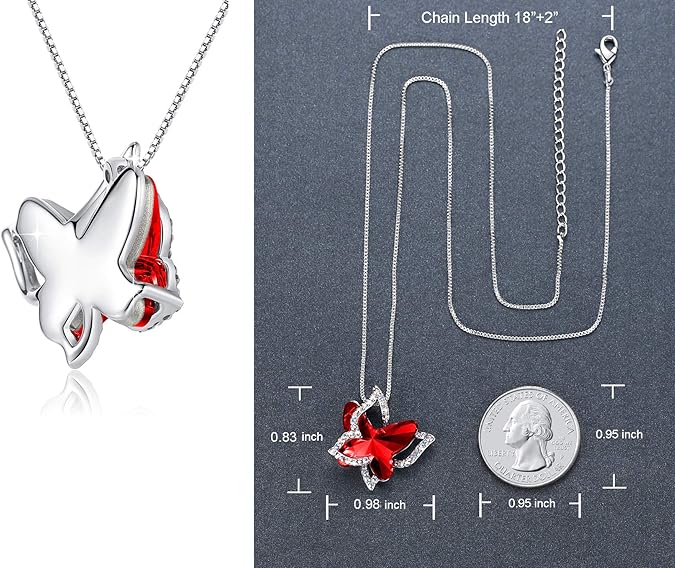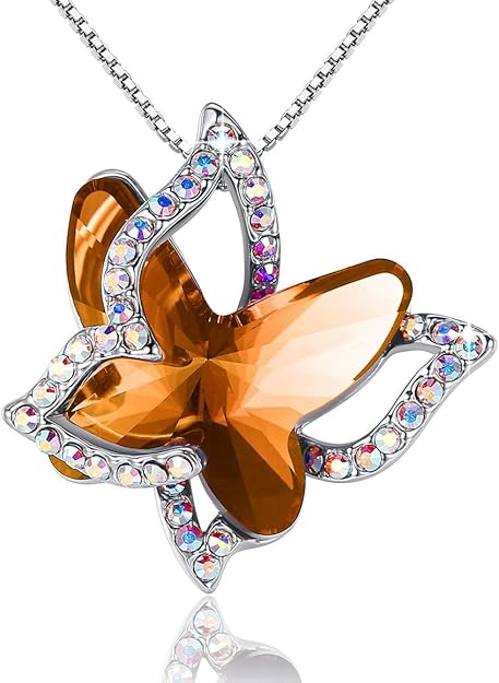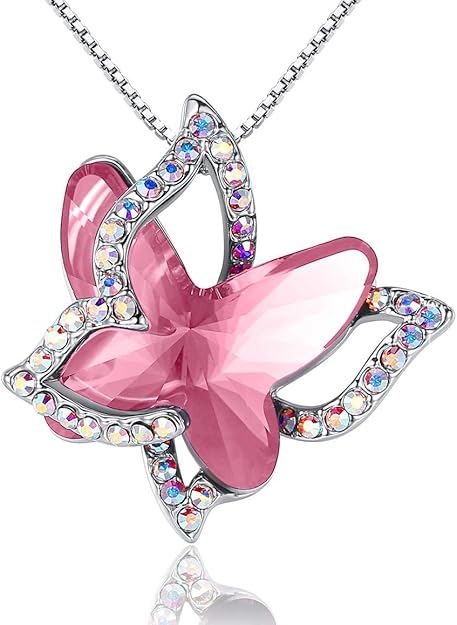 UNIQUE DESIGN: The “Spread Your Wings” design features a vibrant 3d pendant where a shiny birthstone crystal butterfly is overlaid criss-cross by a butterfly frame adorned by Crystal AB zirconia stones resulting in our wonderful butterfly necklace.