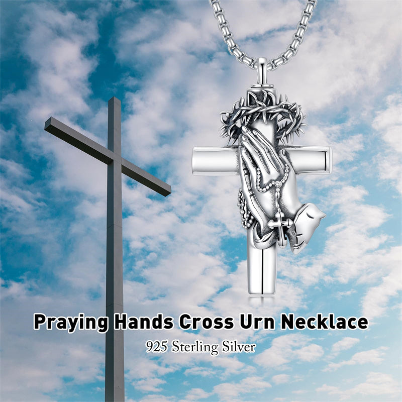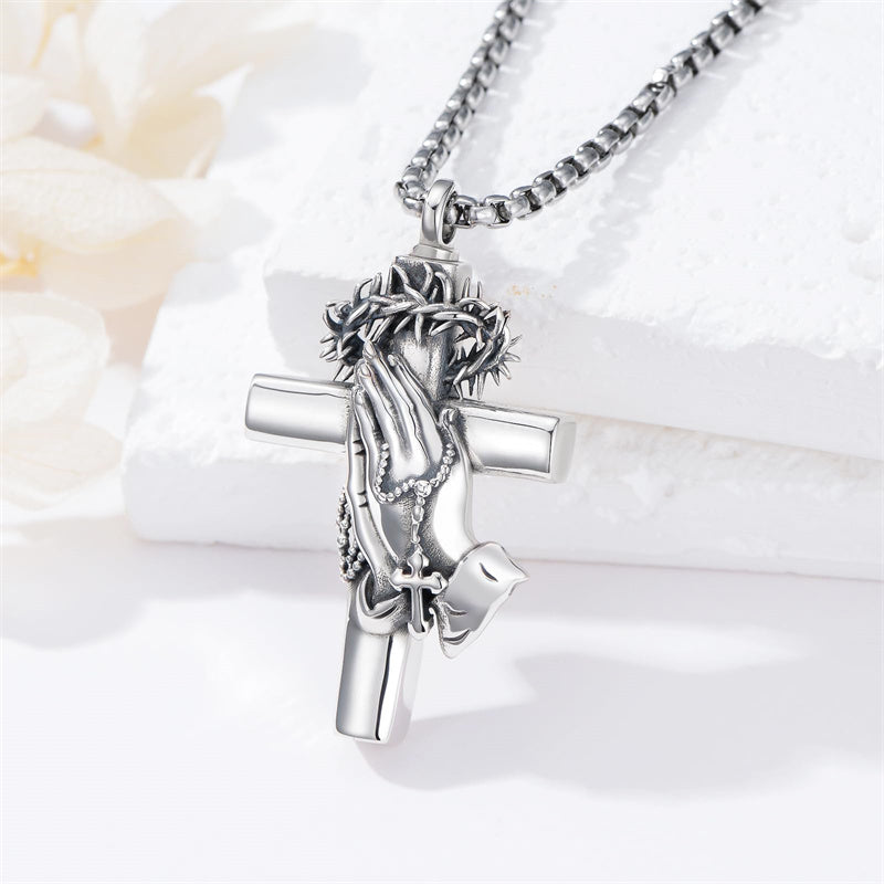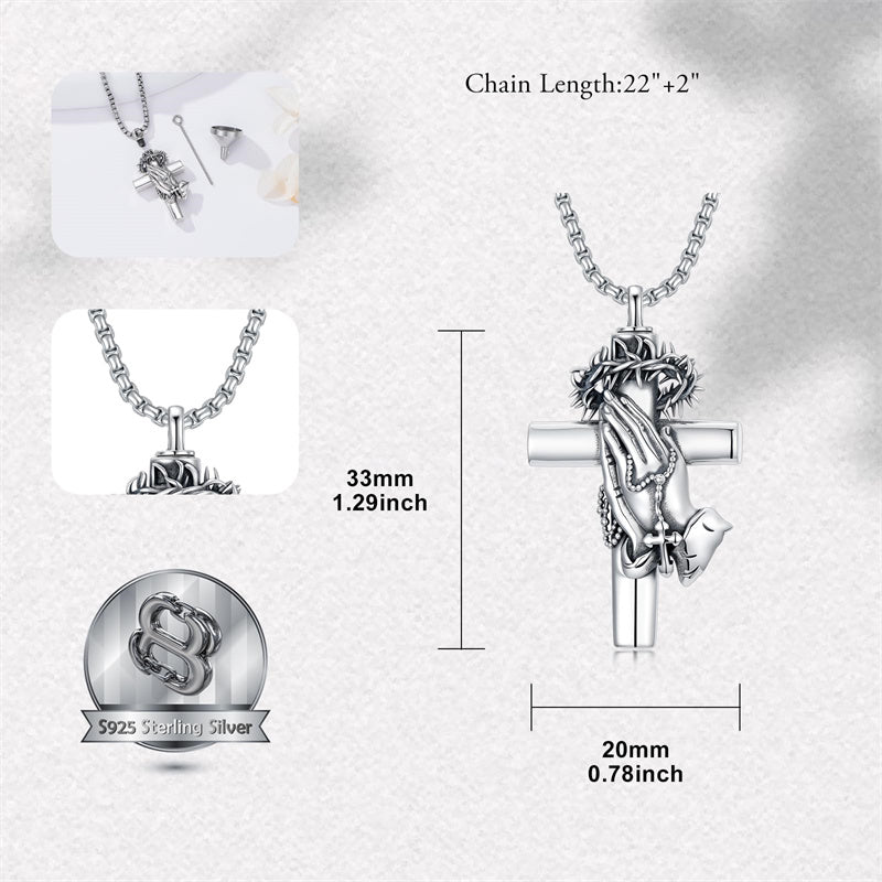The crown of thorns represents suffering, and the praying hands represent faith and salvation. This unique faith urn necklace implies the thoughts and blessings for the people in your heart.