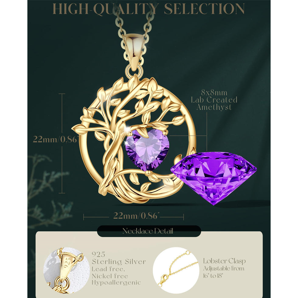 Tree of Life Pendant:The Tree of Life is connected to everything. The tree of life necklace symbolizes growth and strength, rebirth, a bright future, good health, and a fresh start on life. The Tree of Life combined with heart birthstone expresses love and positive energy.