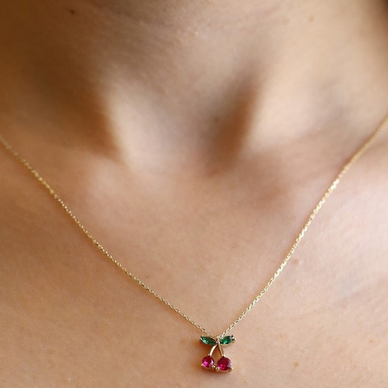 14K Gold Cherry Pendant Necklace