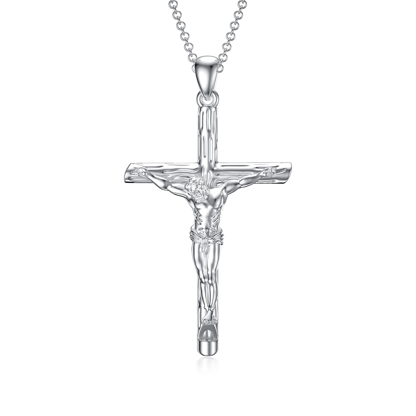 Sterling Silver Jesus Christ Crucifix Large Cross Religious Pendant Necklace