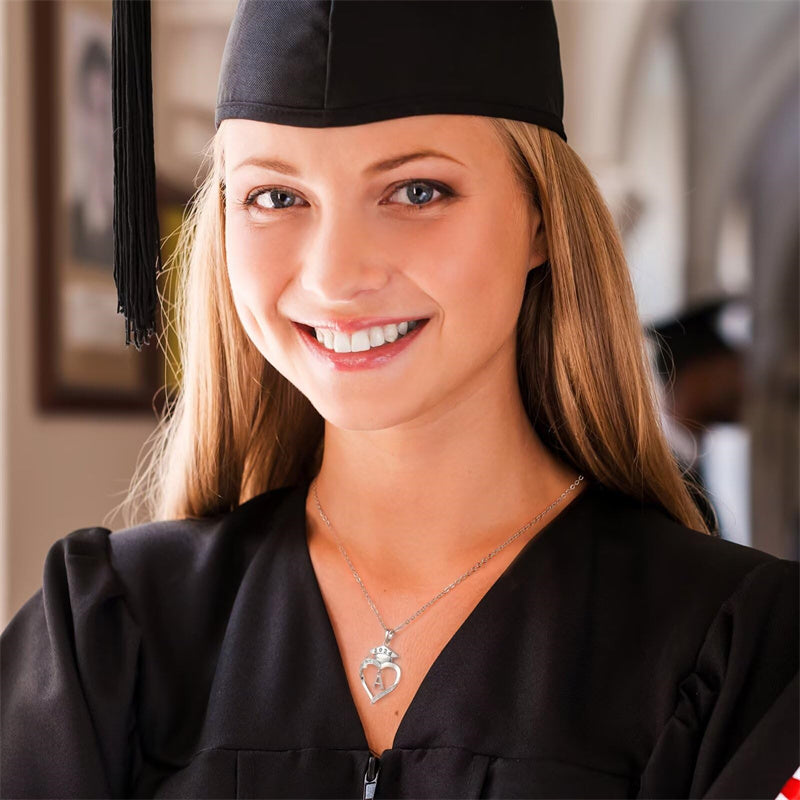 Sterling Silver Heart Initial Letter Pendant Necklace Graduation Gifts