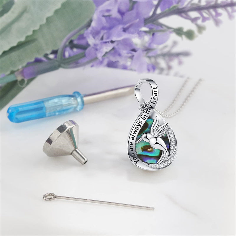 Sterling Silver Hummingbird Urn Necklaces for Ashes Engraved With You Are Always in My Heart