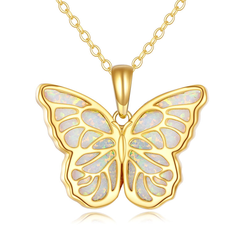 14K Gold Pear Shape TearDangle White Opal Moss Agate Pendant Necklace