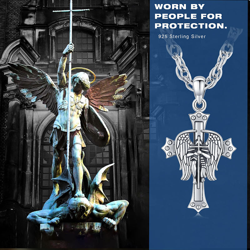 Sterling Silver Saint Michael Cross Pendant Necklace