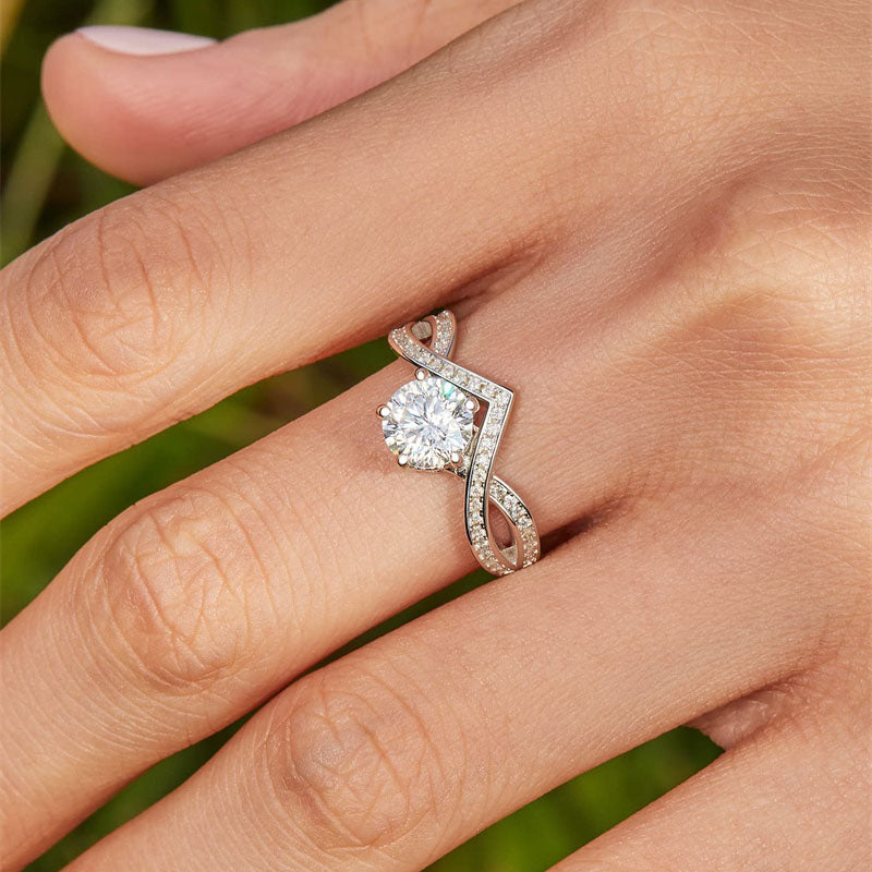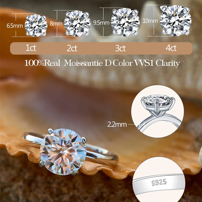 Sterling Silver 10K 14K 18K Gold Personalized Engraved 1ct 6.5mm Moissanite Engagement Wedding Ring