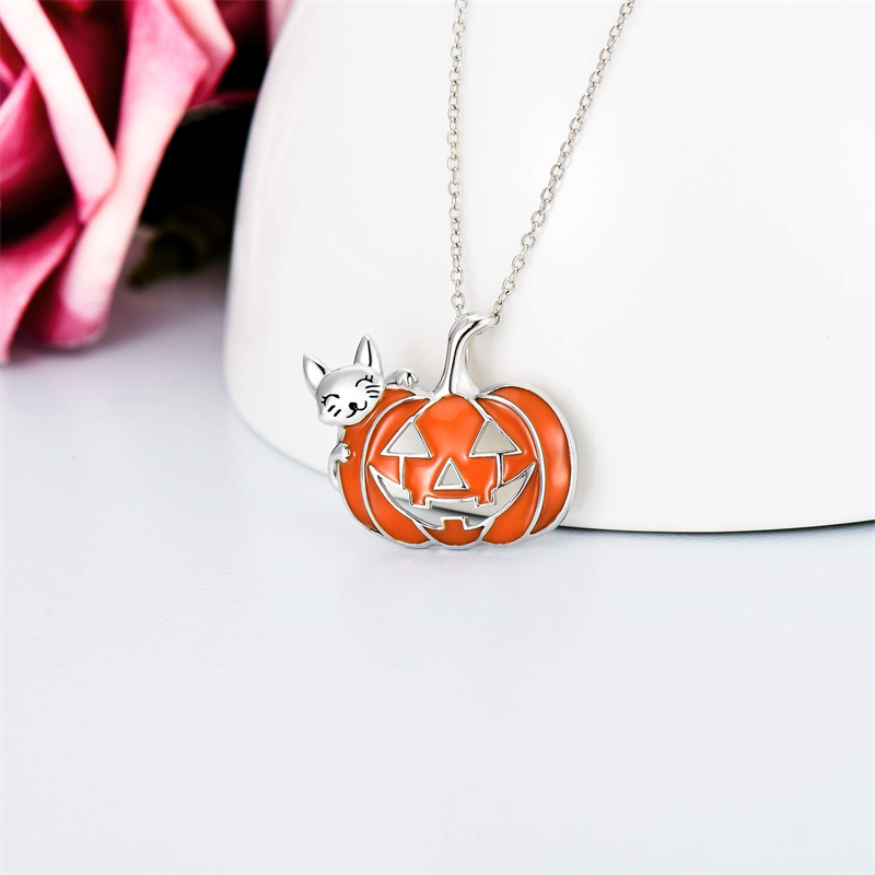 Sterling Silver Halloween Gothic Pumpkin Pendant Necklace