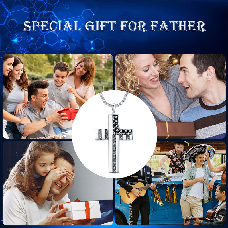 Sterling Silver American Flag Patriot & Cross Pendant Necklace for Men