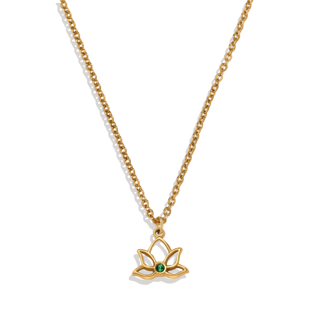 Mini Lotus Birthstone Pendant Necklace