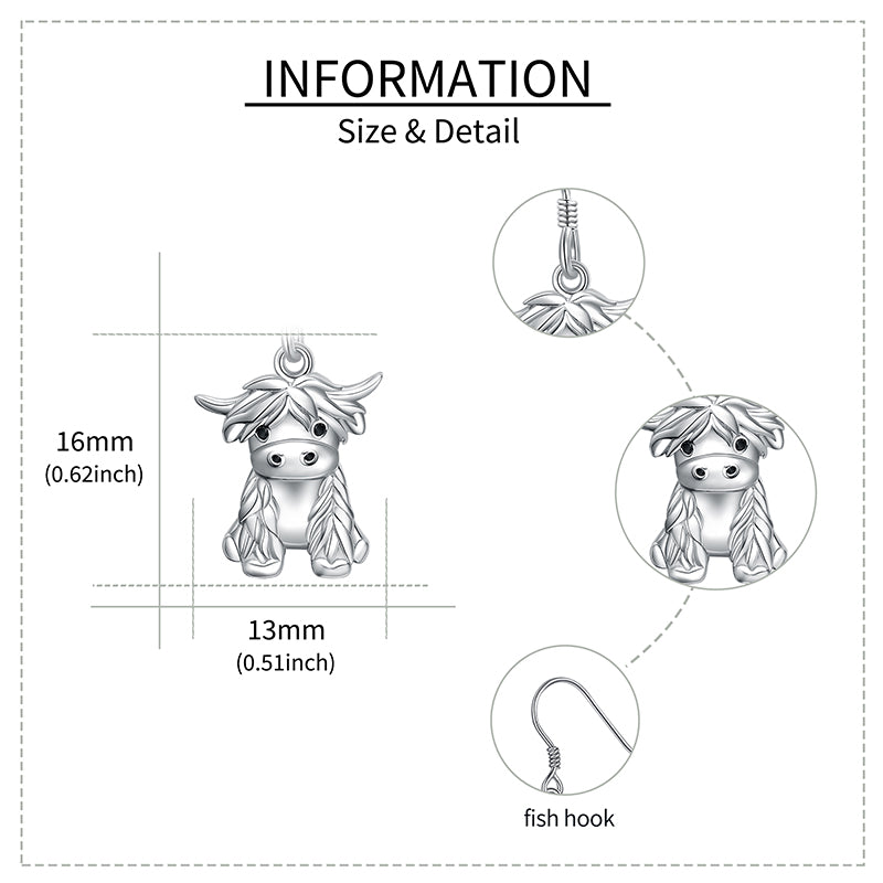 Sterling Sliver Highland Cow Stud Dangle Earrings