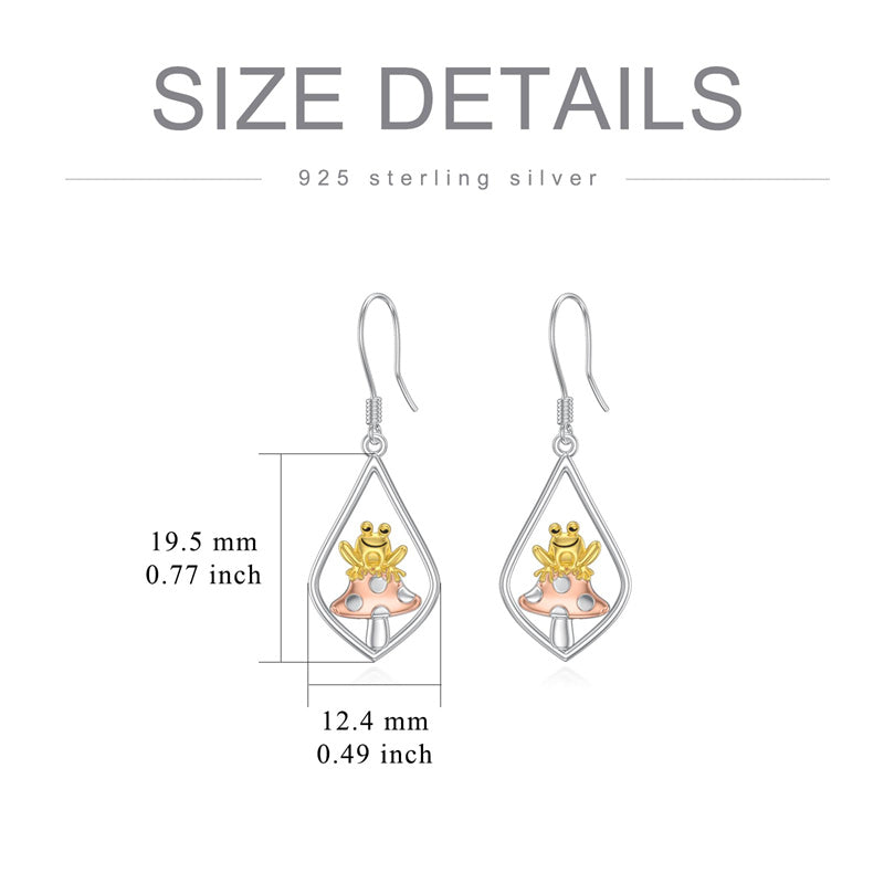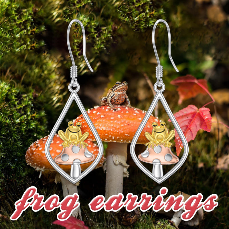 Frog: The cute frog stands on the mushroom with a smile. The combination of the frog and the mushroom allows you to feel the natural scenery as soon as you put on the frog dangle earrings.