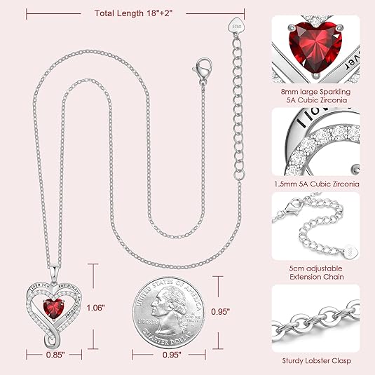 💖【Love Jewelry Engraving " I Love You for Always and Forever"】The garnet diamond necklace is engraved with a love sayings "I Love You for Always and Forever" that could tell your deeply love and promise to your loved ones. it is a romantic birthday gift for wife/girlfriend, wedding anniversary gift for her/wife/girlfriend, and also a unique birthday gift for mom/daughter/Grandma/sister/friends.