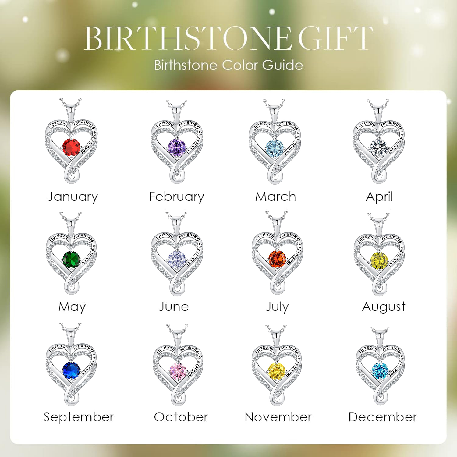 💖【Ideal Gifts for Her - 12 Months Birthstone Necklace】The love heart pendant Januarary birthstone necklaces are 12 different colored gemstones corresponding to each month. This necklace is a perfect gift for Women, like wife gifts, girlfriend gifts, mom gifts, daughter gifts and grandma gifts on Birthday, Anniversary.
