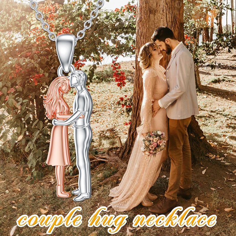 Couple necklace in one chain; this necklace featuring two hugging people to express love and close relation, give him/her a hug so that the passion between each othrer will last forever, show your lover/wife/girlfriend/boyfriend the hug necklace, and you will get a big hug and for the fantastic design, you can wear it in any occasion.