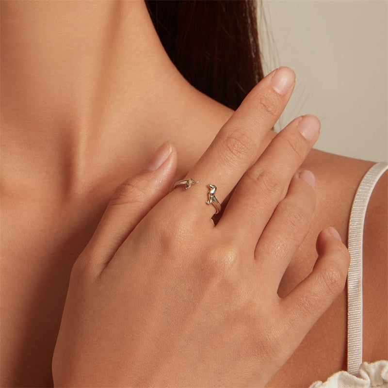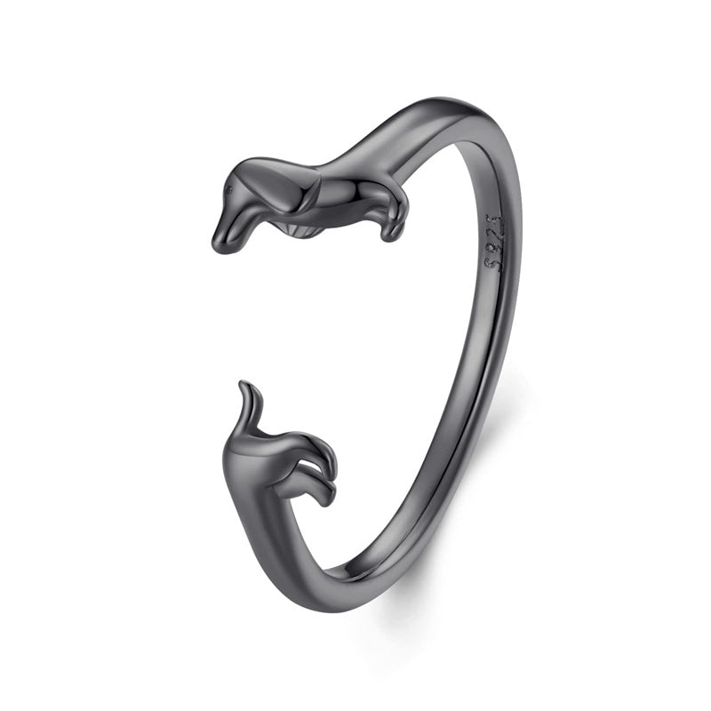 Dachshund Open Ring : The ring has a dachshund head with two paws on one end and a dachshund tail end, which is completed with two little feet on the other end. When you adjusted the fit on your finger, the head part fits together perfectly over the tail part. The dachshund ring is the best gift for dog lovers.