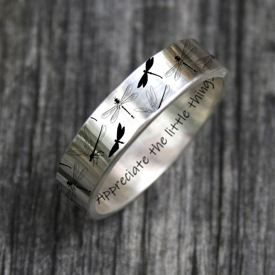 Sterling Silver Dragonfly Animal Ring With Engraved Appreciate The Little Things