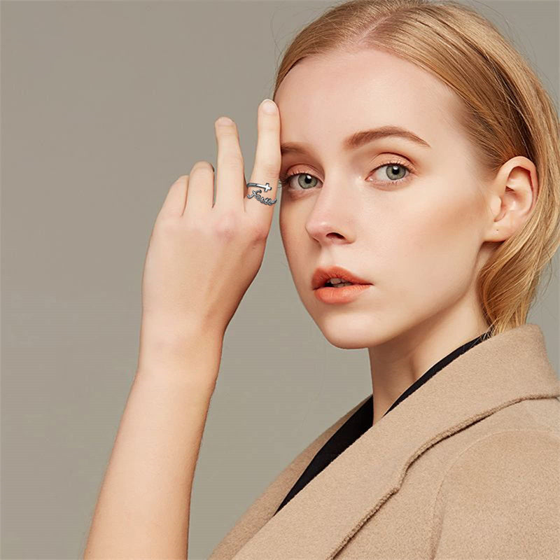 Sterling Silver Adjustable Cross Inspirational Ring With Engraved