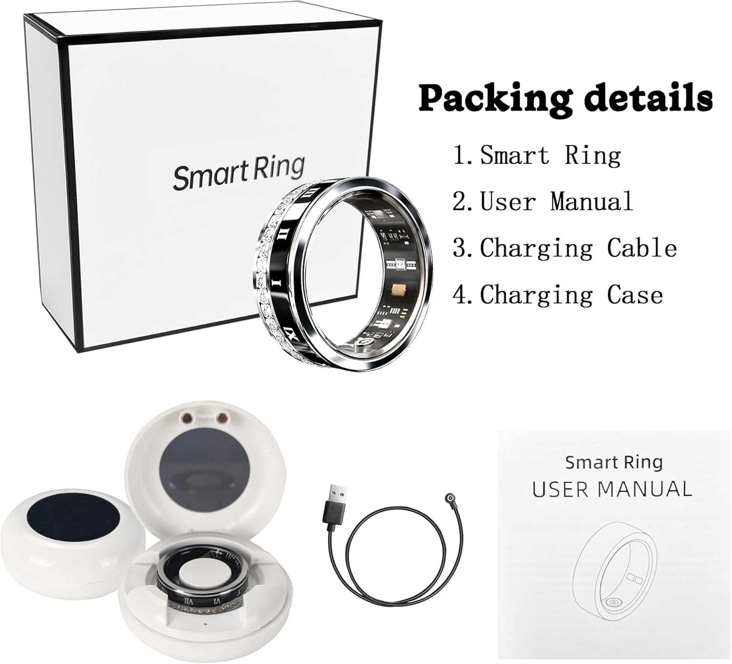 【𝐁𝐚𝐭𝐭𝐞𝐫𝐲 𝐋𝐢𝐟𝐞】The sleep tracker ring has a 3-7 day battery life and can be fully charged in 1 hour. With a 300mAh mini charging box, the fitness tracker ring can provide 10-15 charging cycles for the ring, ensuring a long-lasting and stable battery life experience.