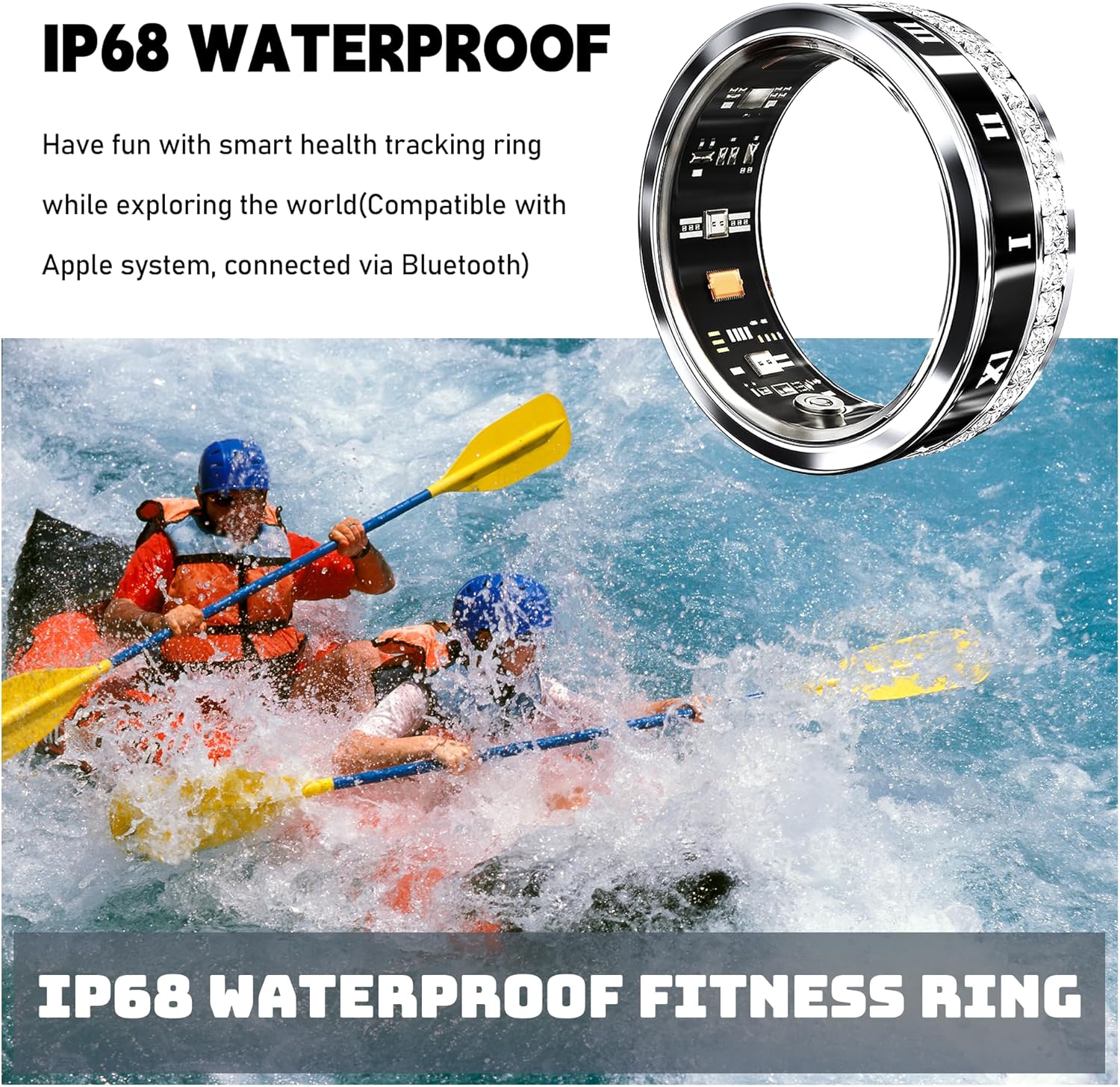 【𝐈𝐏𝟔𝟖 𝐖𝐚𝐭𝐞𝐫𝐩𝐫𝐨𝐨𝐟】The fitness ring meets the IP68 waterproof standard. Whether it is daily washing hands, showering or shallow swimming, there is no need to take off the ring, making it more convenient and worry-free to wear.