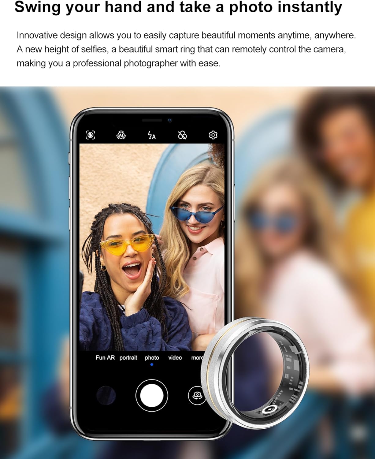 Men/Wuman Smart Ring for Women Ladies Smart Ring Fitness Ring Fitness Tracker for Men Waterproof Sleep Heart Rate Monitor Health Ring Pedometer Step Counter Compatible with ios Android Phones