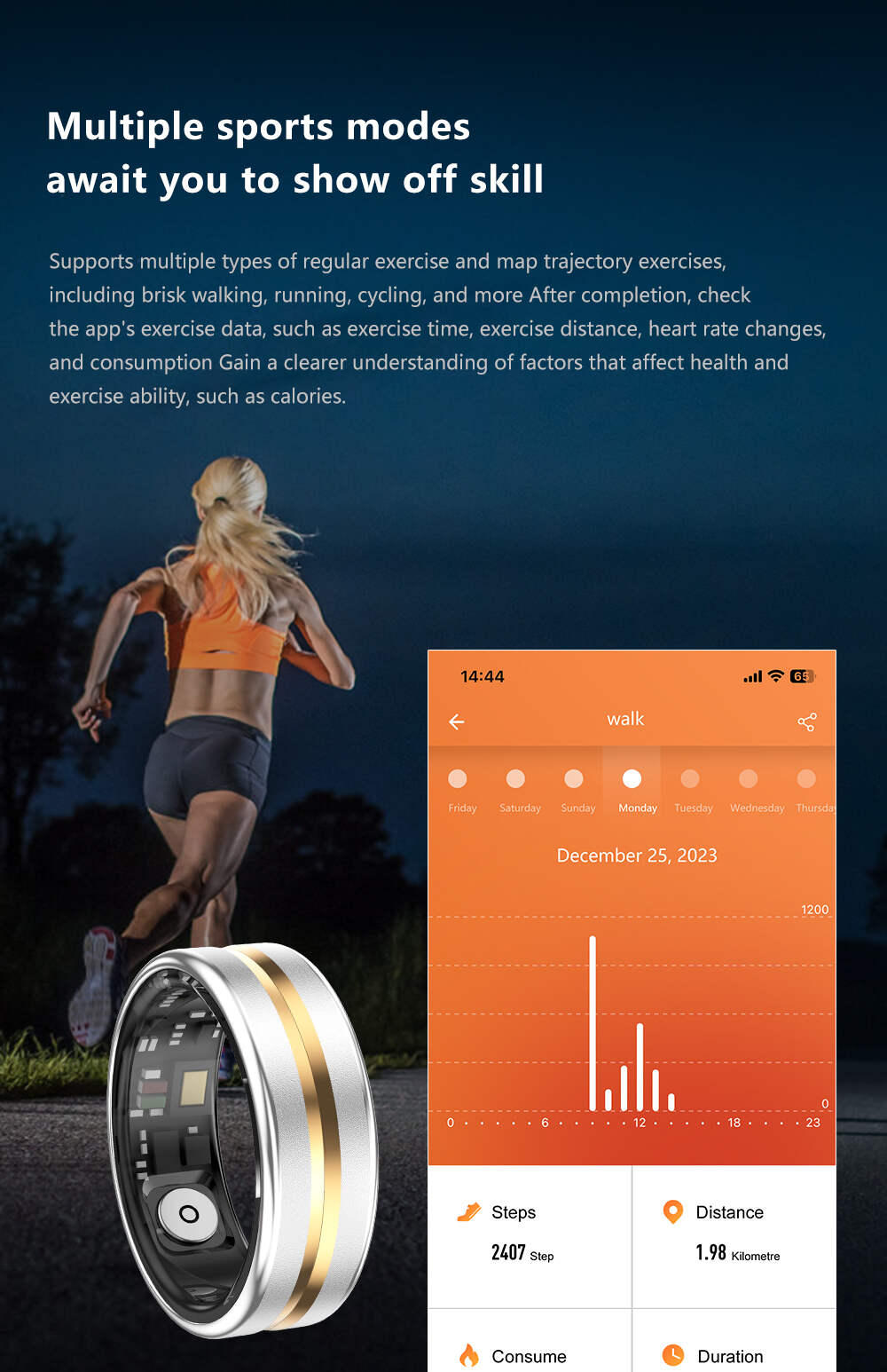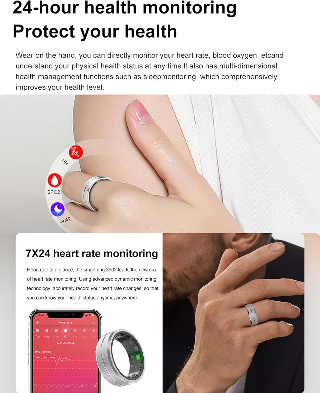 Men/Wuman Smart Ring for Women Ladies Smart Ring Fitness Ring Fitness Tracker for Men Waterproof Sleep Heart Rate Monitor Health Ring Pedometer Step Counter Compatible with ios Android Phones